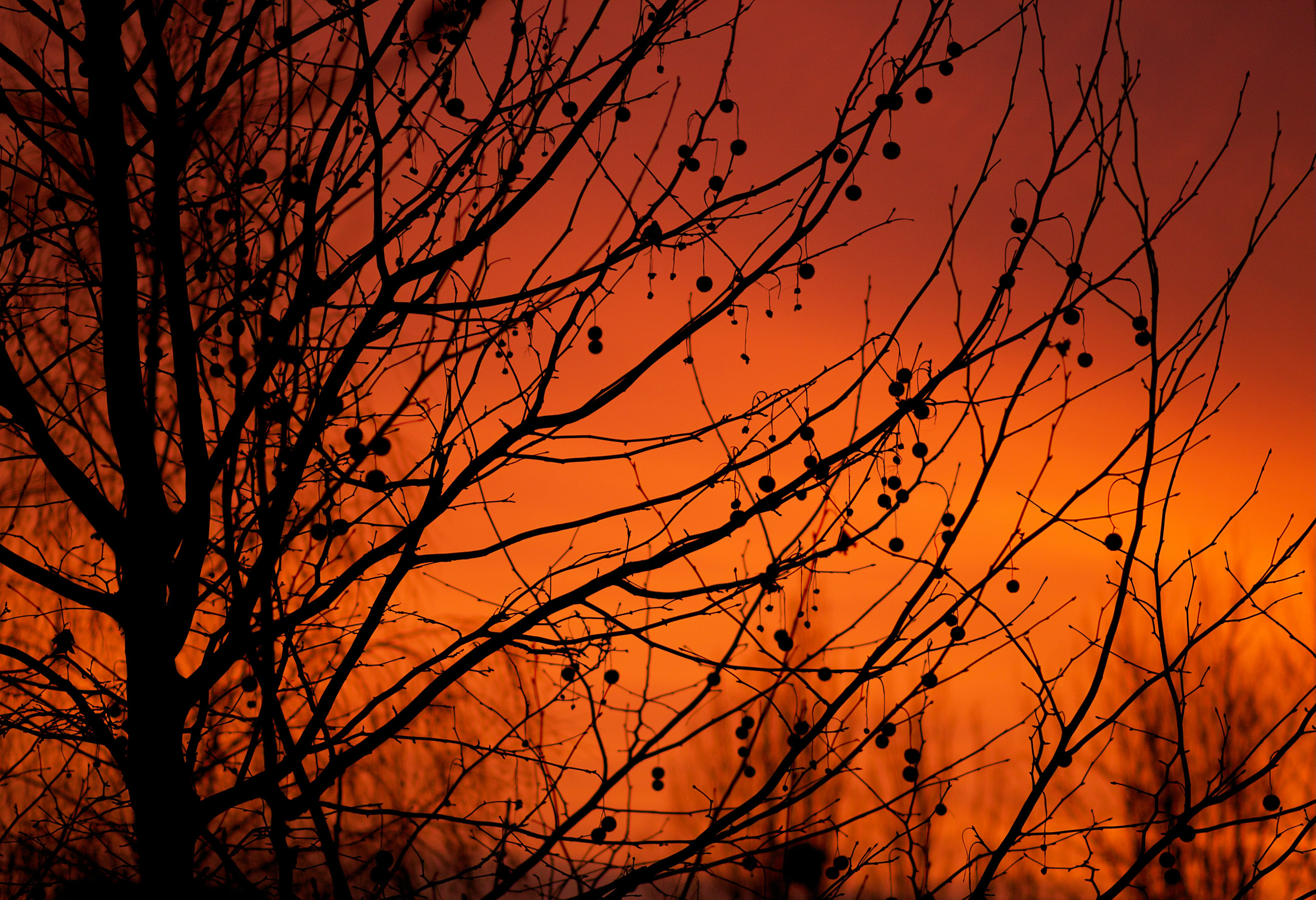 of winter branches. Linear and alone